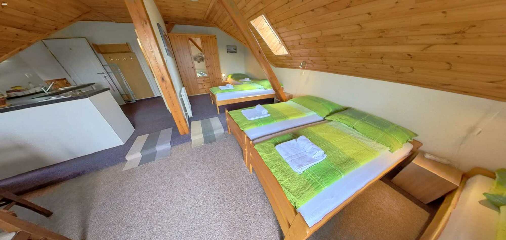 Tento prostorný apartmán s 5 samostatnými postelemi má balkon s výhledem na Lipenské jezero, TV s plochou obrazovkou s mnoha satelitními programy a bezplatné Wi-Fi připojení. Malý kuchyňský kout a vlastní koupelna se sprchovým koutem umožňuje rodině nebo malé skupině přátel užít si svůj pobyt naplno. Apartmán je nekuřácký, stejně jako celý objekt.
